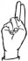 На ћирилици написано САНДРА ЈОВЕЉИЋ састоји се из 13 слова [?]. Исписано ћириличном једноручном азбуком за глувонеме: